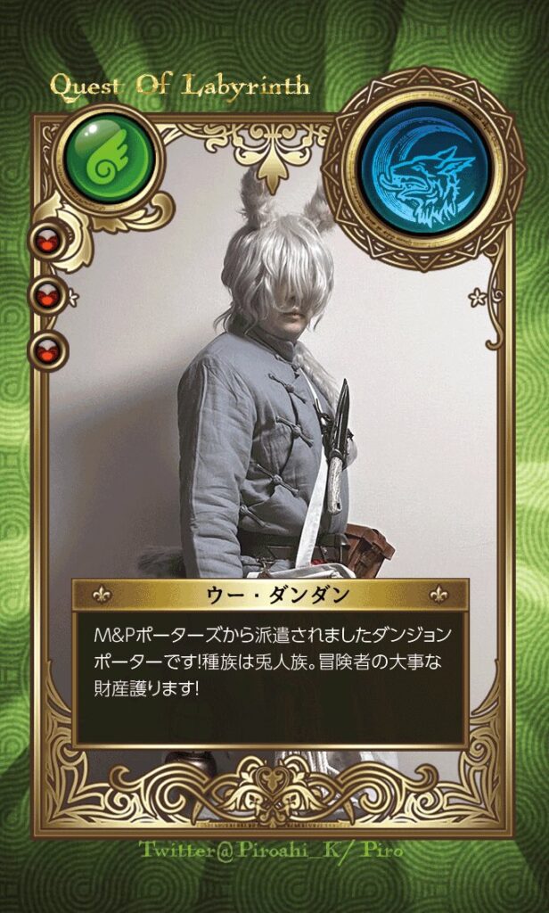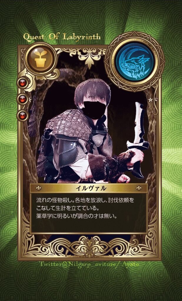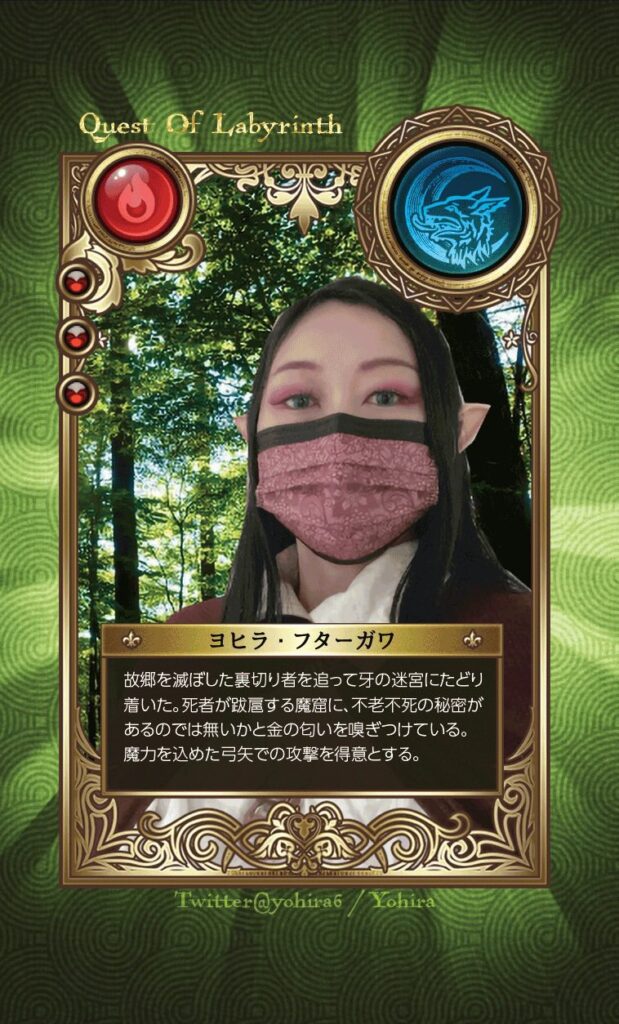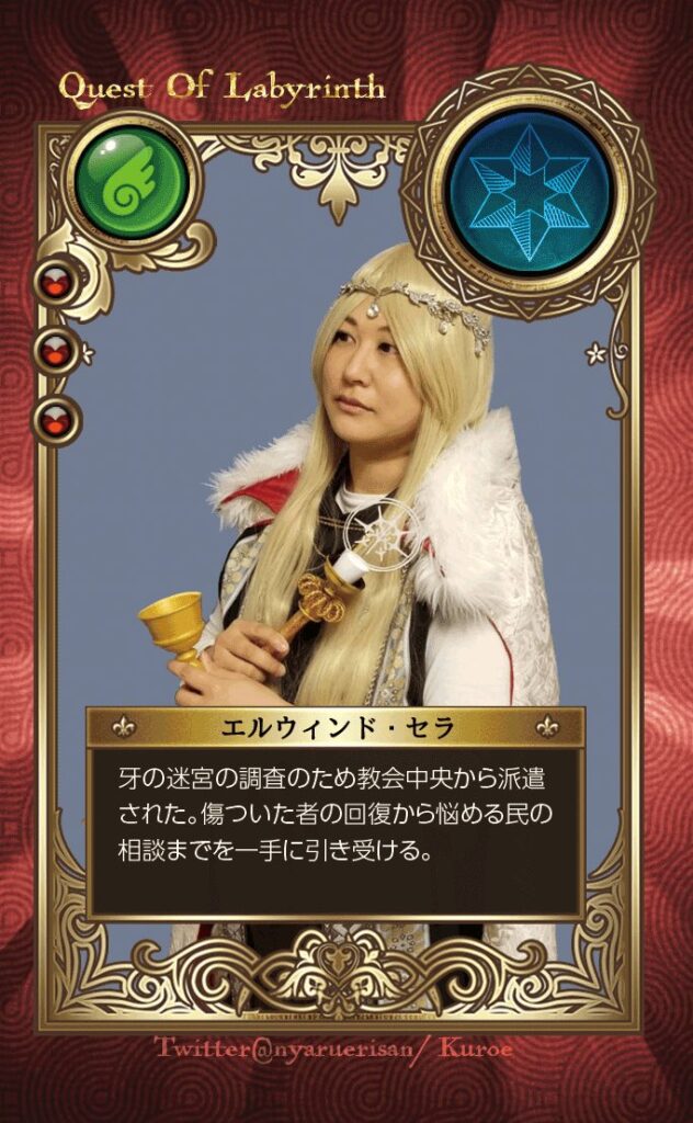 クエスト・オブ・ラビリンスでは、専用のディスコードグループに入ると、フルカラー名刺サイズで作成できるキャラクターカードをのデータ作成or入稿サービスを行なっております。